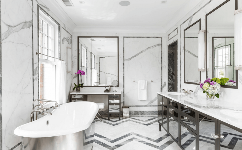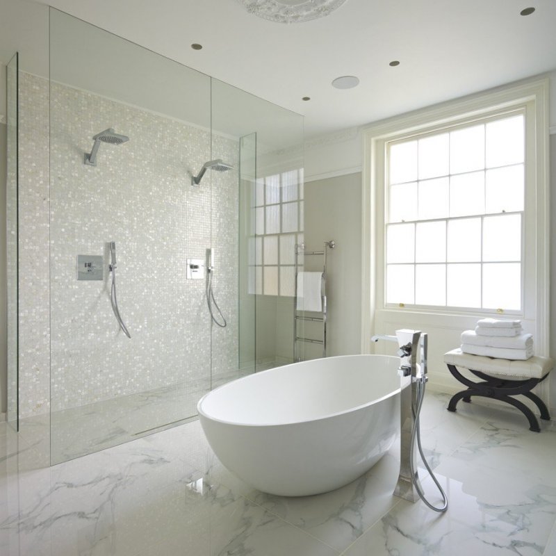 Слой выбранного сырья должен соответствовать помещению. Пол следует делать теплым. Если используется керамика, наливное покрытие, то для нагревания устанавливается водная, электрическая система обогрева. Касаемо всего пространства, учитывается факт постоянного наличия воды, попадание ее на все поверхности, поэтому здесь должна присутствовать паро-, гидроизоляция.