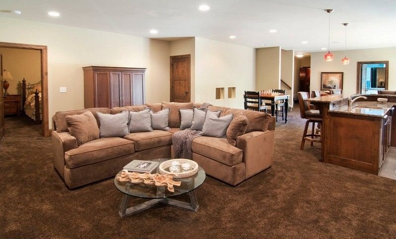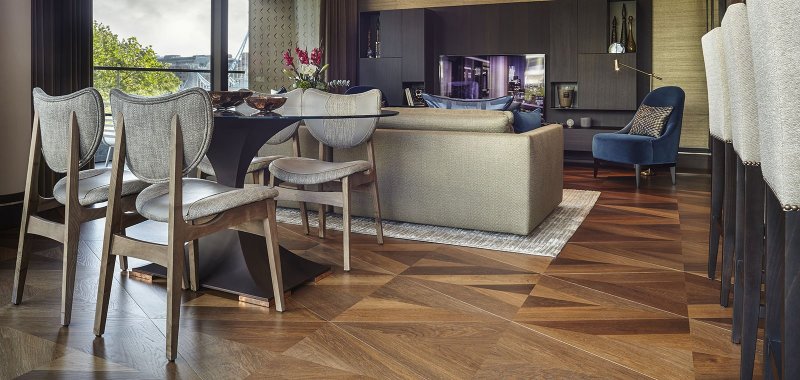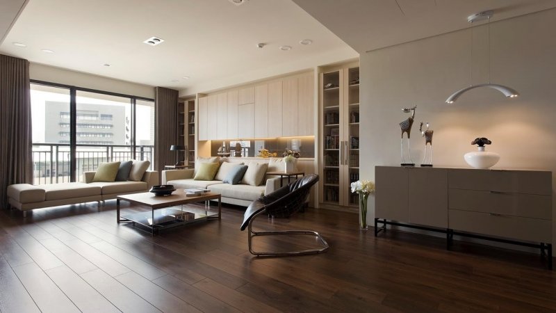 Все обитатели дома большую часть времени проводят в жилых помещениях. Поэтому напольное покрытие в этих местах должно отличаться долговечностью. В гостиной принимают друзей, знакомых, сами члены семьи коротают здесь вечера, соответственно нагрузка на пол достаточно велика. Материал напольного покрытия выбирают с учетом его устойчивости к разрушению, возникновению царапин, которые могут оставить любимые питомцы или мебель, при ее перестановке.