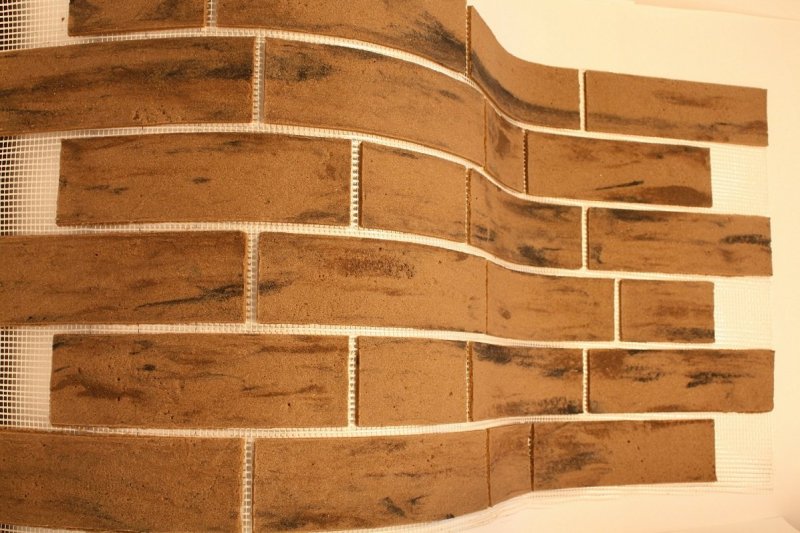 специальная затирка для пространства между гибкими кирпичами не требуется, что значительно удешевляет отделку.