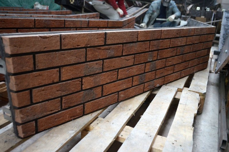 Декор из цемента также имеет невысокую цену, выпускается разнообразных цветов – серого, красно-коричневого, белого, черного и др. Такой искусственный кирпич применяется даже зимой в неотапливаемых помещениях, так как состоит из одной части портландцемента высоких марок, двух-трех частей песка. Его отливают в силиконовых формах – раствор допустимо окрашивать на этой стадии, либо при помощи валика, губки, кисти, декорировать под кирпич или каменную деталь уже готовое изделие, являющееся настенным элементом кладки. Искусственные кирпичики получаются фактурными, на ощупь как настоящие.