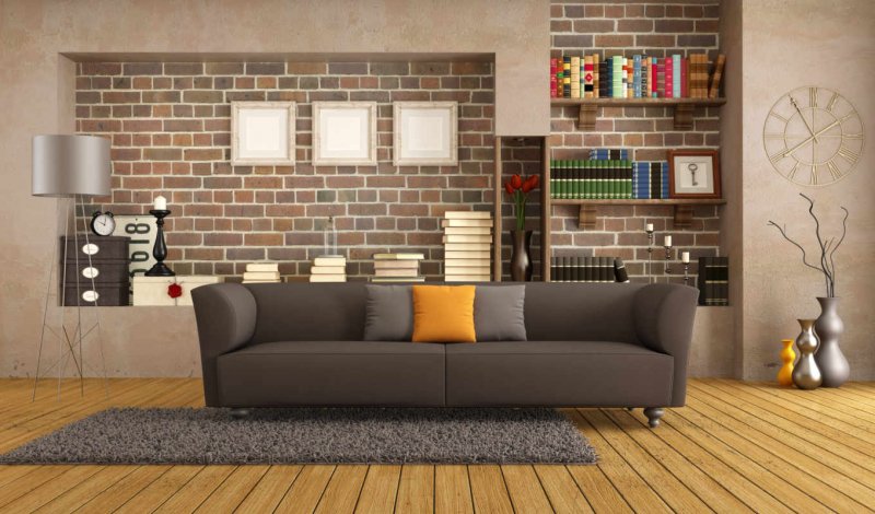 Декор, имитирующий кладку из красного, белого, любого другого кирпича, хорошо смотрится практически в любом помещении. Для просторных комнат подойдут темные, холодные, насыщенные колеры, для тесных, слабоосвещенных – более светлые, теплые.