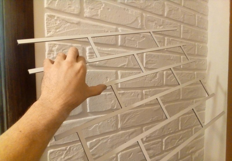 Пенопласт – дешевый, легко обрабатывающийся материал. Добыть обычный пенопласт можно из картонных коробок из-под мебели, бытовой техники. Блоки из плотного пенополистирола приобретают на строительных рынках. Процесс работы несложен: кирпичики подходящего размера вырезаются из данного материала, неровности шлифуются наждачкой. Детали наклеивают на стенку, потолок плиточным клеем, «жидкими гвоздями», клеем ПВА, окрашивают акрилом, другой водоэмульсионной краской. Неровности предварительно создаются при помощи паяльника, канцелярского ножа. Совет: предпочтительный размер кирпичиков – 250 на 120 мм, расстояние между ними – один-два мм.