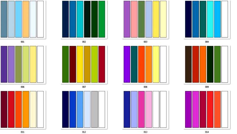 Данную или подобную схему используют, помня о том, что первый цвет необходимо применять как основной. Следующие за ним два могут выступить как дополнительные, те, что следуют далее – акцентные.