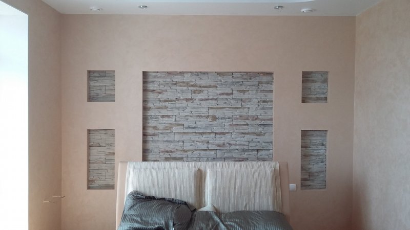 Материал применяется не только для выравнивания стен. При оформлении интерьера в античном, арабском или готическом стиле декоративная штукатурка незаменима. Она воплотит красоту мрамора, этнический сюжет. С ее помощью создают картины, аппликации. Шикарное панно можно расположить только на одной стене. Но есть много идей, как сочетать два востребованных материала.