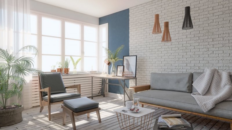 Многие сейчас модные стили (готика, лофт или скандинавский) очень по-доброму относятся к неоштукатуренным стенам. Чтобы брутальность в помещении не зашкаливала, «голой» оставляют одну из стен, либо же только часть ее. Остальной периметр отделывают подходящими для стиля и обстановки обоями, цветными или однотонными.