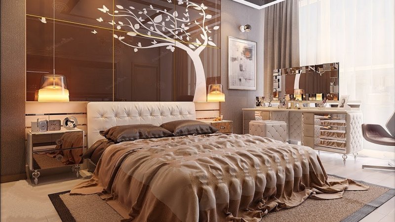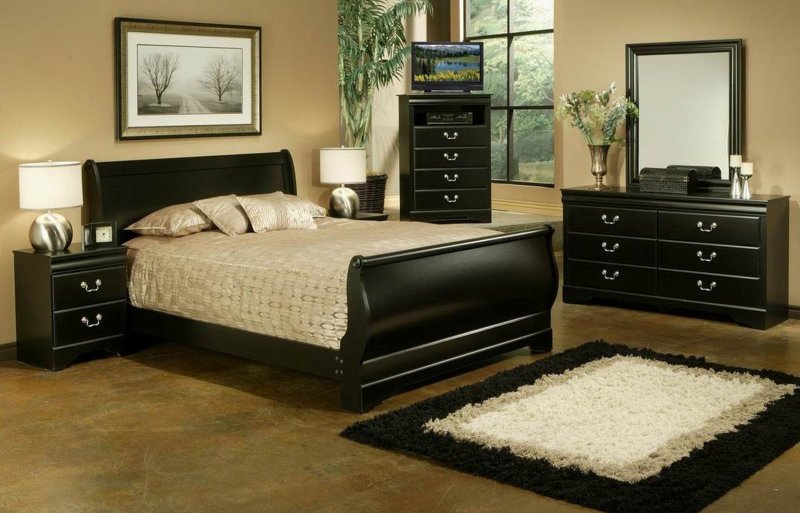 В спальной комнате нет ничего важнее, чем цветовая гармония. Цветовое решение спальни лучше продумывать от кровати, а не от окраски стен или давно купленных, но дорогих сердцу штор. Для стиля минимализм подойдут светло-темные оттенки мебели. Например, пара: белая кровать – темная тумба. Если вы хотите сыграть на контрастах, то соберите несколько сочетающихся друг с другом оттенков, чтобы цвета логически переходили от одного атрибута мебели к другому. Оформляется спальня и дополнительными тумбами, небольшими шкафами, компактными полками. Подумайте и о напольном покрытии. Мягкий ковер – частое интерьерное решение. Его подкладывают под кровать так, чтобы вставать и ложиться на босую ногу было более, чем удобно.