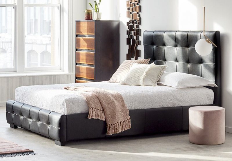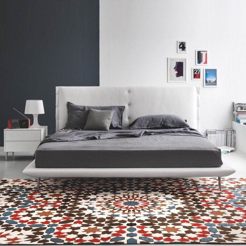 Выдержать стиль стоит дорого. Особенно если вы подобрали необычную кровать, тяжело вписывающуюся в интерьер помещения. Убрать интерьерные недостатки всегда помогут элементы дополнительного декора и оформление прикроватной зоны. Если размер кровати слишком велик по пропорциям комнаты, не нагружайте ее дополнительными деталями и лишними подушками, что превратит постельное место в отпугивающую крепость. Также не забывайте про изюминку: даже минималистичный дизайн украшается уникальной деталью типа узорчатой спинки или кожаного изголовья.