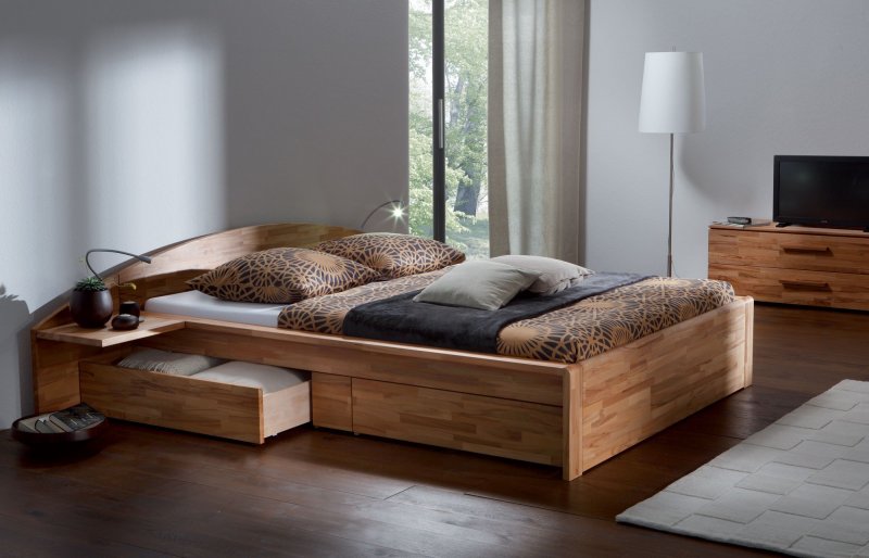 Спальные места по модели условно делятся на две категории: кровати для спален с двумя опорными стенками и кровати для спален с одной опорной стенкой. Для моделей с двухсторонними бортиками местоположение должно быть серединное, так, чтобы доступ к кровати был с двух сторон. Часто производители встраивают дополнительный мебельный гарнитур с боковых сторон кровати для хранения различных вещей. Если вы планируете поставить кровать к стенке, следите за тем, чтобы ящики располагались с другого бока. Если же вы берете кровать с двумя опорами, то подбирайте модель с двухсторонним гарнитуром, чтобы разгрузить спальные шкафы, например, пледами, лишними покрывалами или пододеяльниками. Также позаботьтесь о прикроватной зоне – по евростандартам у кровати должно оставаться определенное переднее пространство.