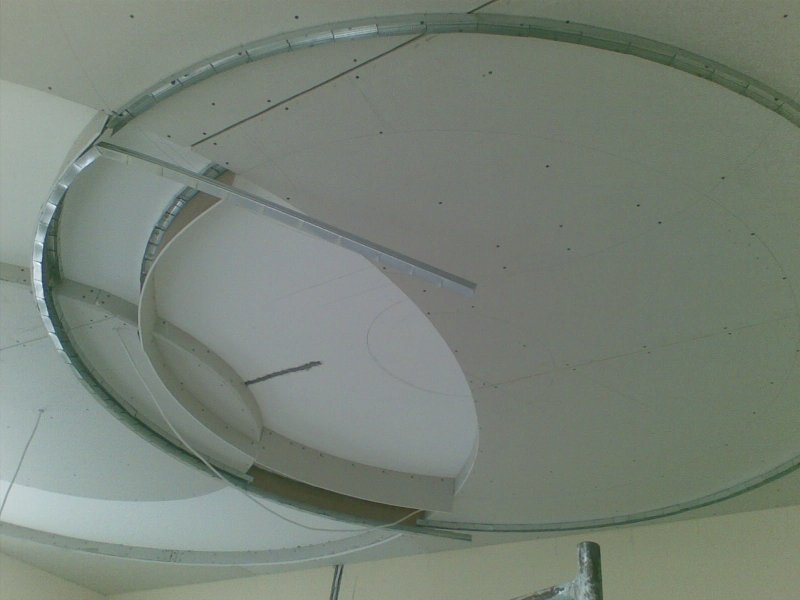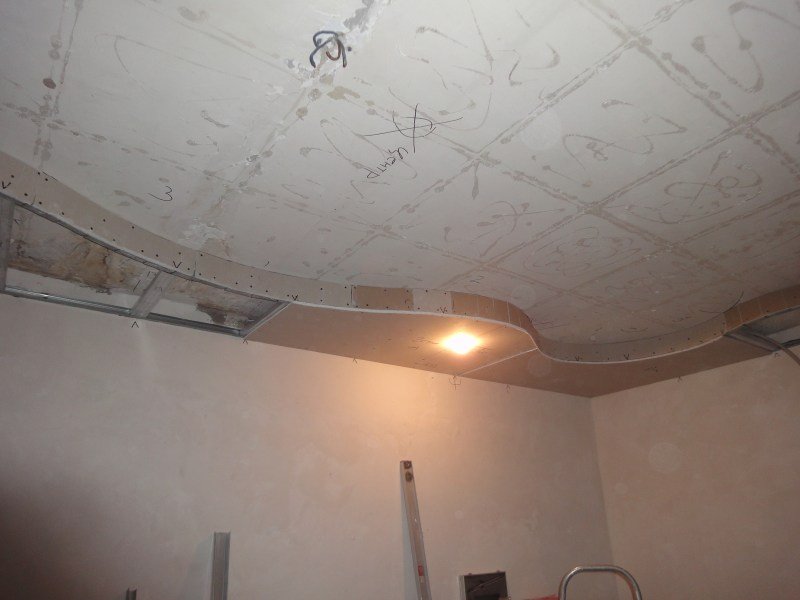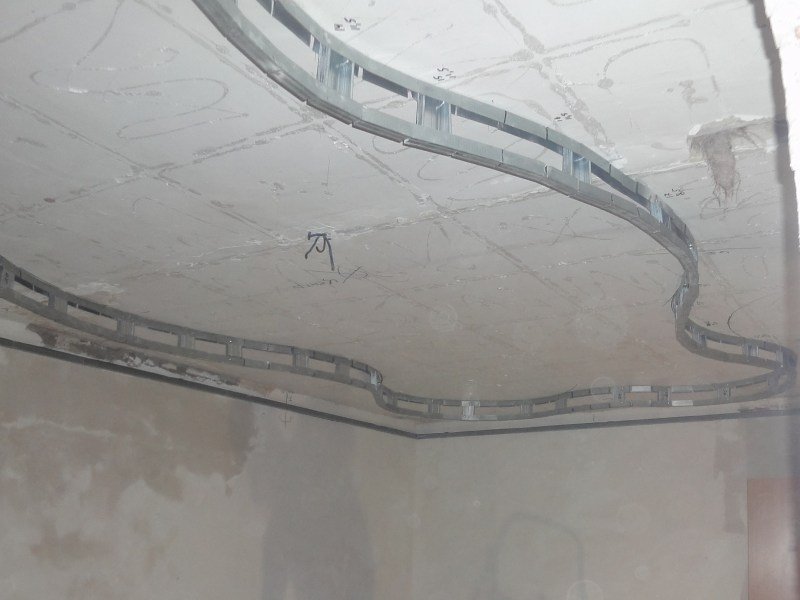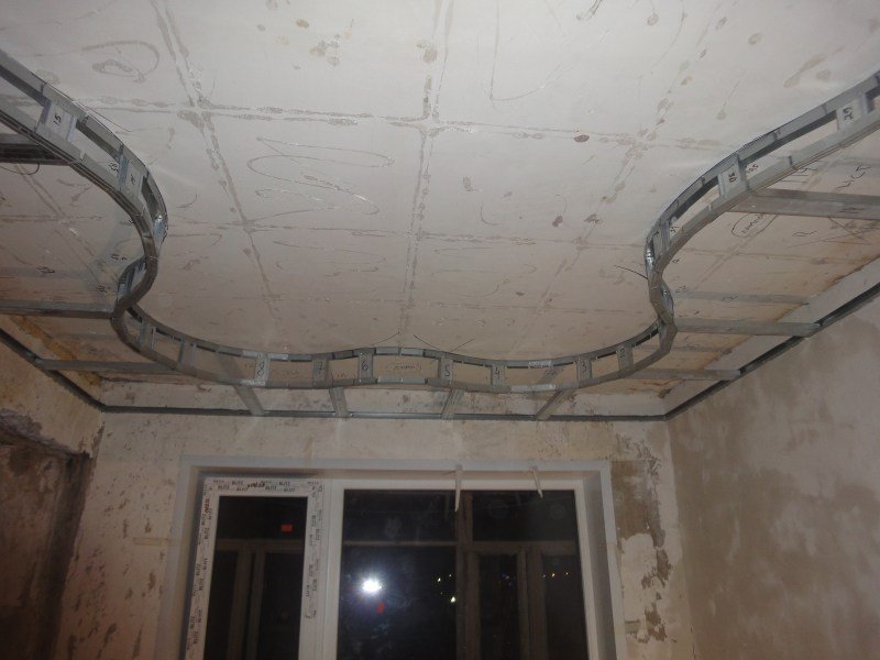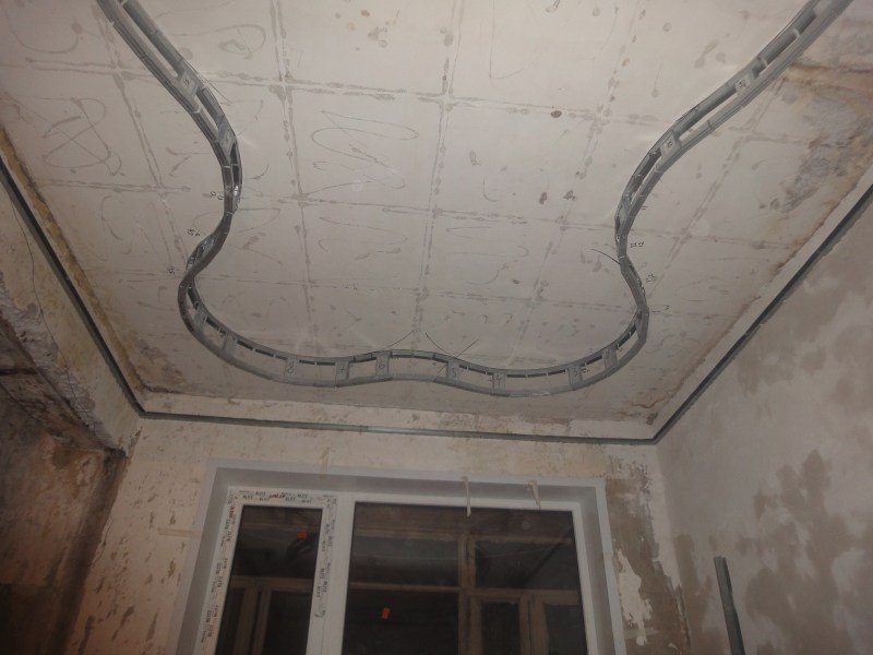 Позволяет играть с формами, создавать сложные, многоуровневые потолочные конструкции;