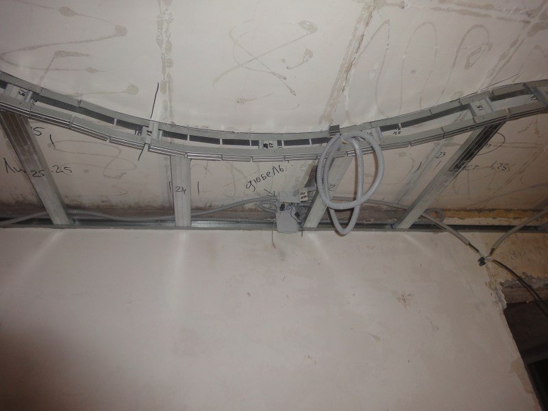 Монтаж электропроводки начинается с разработки схемы, где указаны все ключевые элементы, от распределительного короба, до каждого выключателя, лампочки. Работы осуществляется до установки листов гипсокартона.