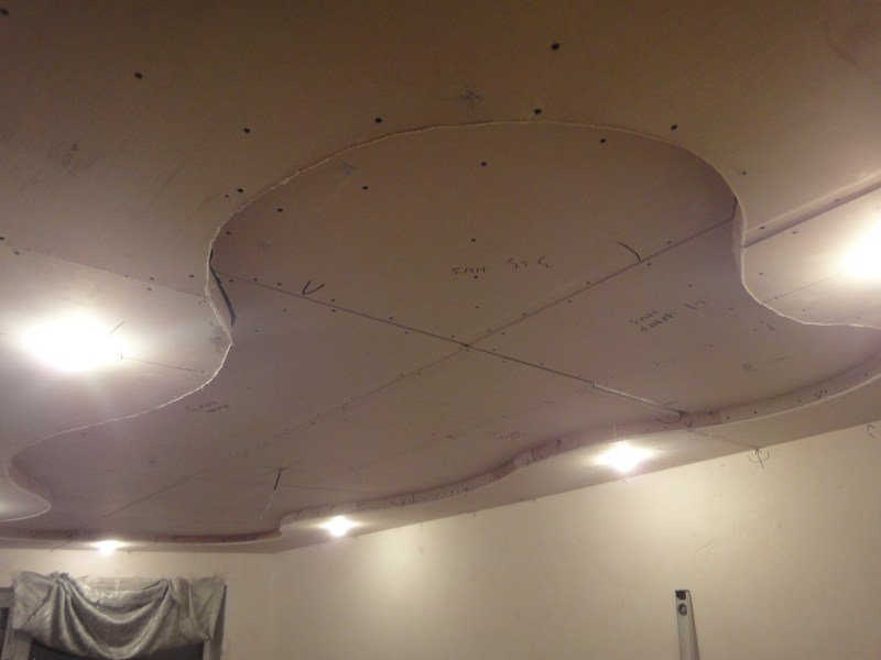 Стройматериал, используемый для выравнивания и отделки потолка, востребован широкими массами. Из стандартного листа создаются различные конструкции. Также существует много форм, которые можно придать потолочной поверхности, рассмотрим их:
