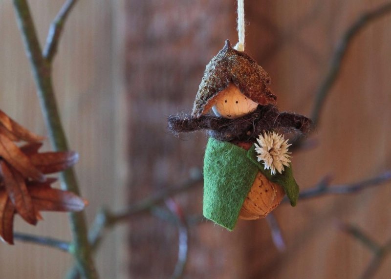Новогодние каникулы – идеальная пора для творческих вечерних занятий. Многие профессиональные мастерицы и просто любители эксклюзивных новогодних игрушек предпочитают работать с натуральными материалами. Из обыкновенных желудей получатся оригинальные и простые елочные украшения. Их можно собрать в подвесную композицию, просто покрасив шляпки в золотистый цвет, или сделать красивую смешанную гирлянду с добавлением маленьких шишек.