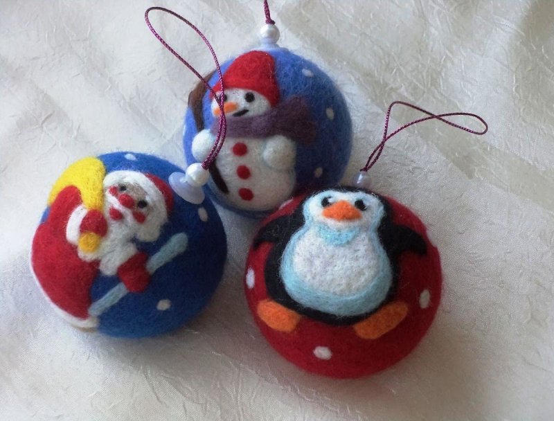 Валяние из шерсти простое и увлекательное занятие. Объемные фигуры получаются легкими и мягкими. Для этого потребуются кусочки синтепона, моток шерстяной пряжи. Начинающим рукодельницам лучше отдать предпочтение простым формам новогодних игрушек.