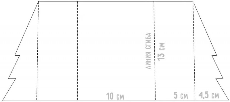 Относительно отмеченной линии на лицевой стороне листа нарисовать елочку (или стопку подарков) с одинаковыми левой и правой стороной.