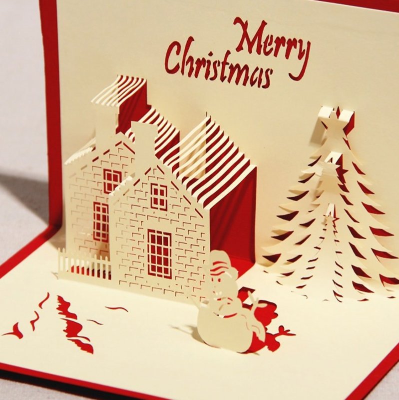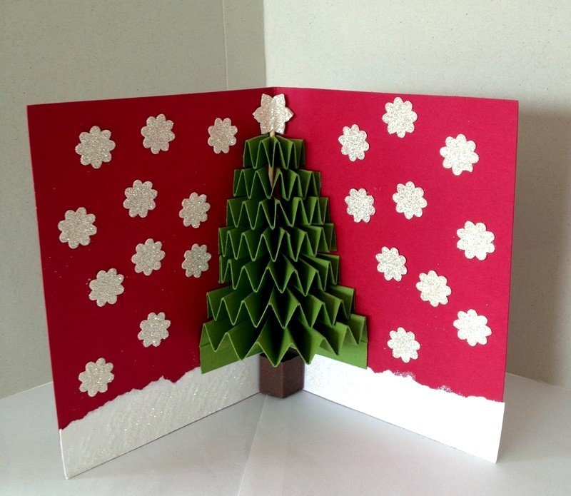 Используя цветную плотную и обычную белую бумагу, можно в два счета сделать прикольную трехмерную открытку к Новому году. С указанными ниже простыми мастер-классами вы научитесь собирать такие поделки с елочкой и подарками.
