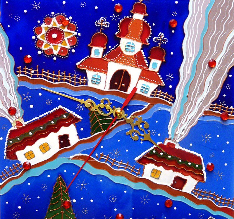 Слева и справа приклеить снежные сугробы. Дополнительно фетровую аппликацию можно украсить маленькими вырубками из фетра в виде елочек.