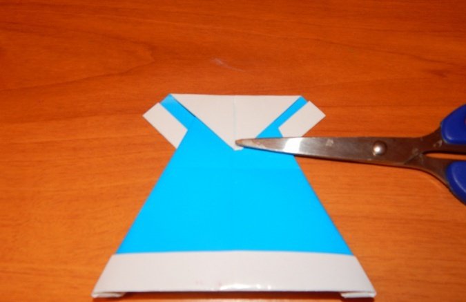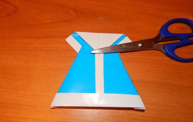 На белом листе отметить вертикальную середину. С задней стороны ее нужно аккуратно прочертить ножницами.