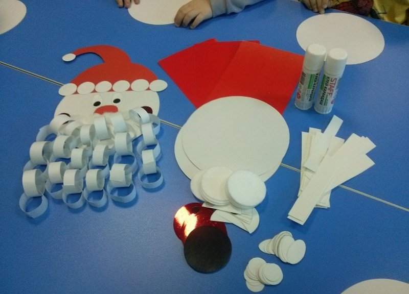 Из ваты изготавливаются шарики для оклеивания «пушистых» элементов: бороды, меха на шапке и костюме.