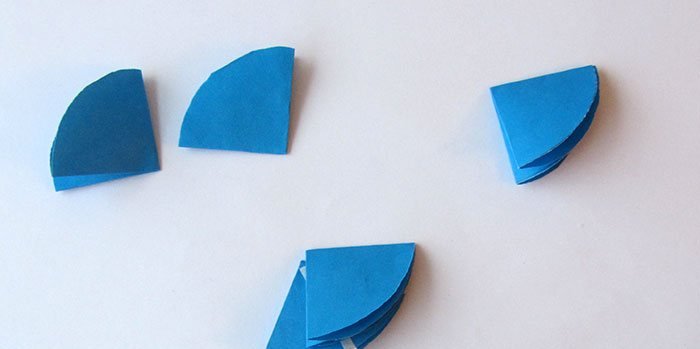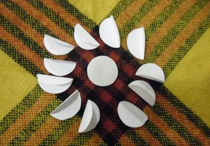Из разноцветной бумаги вырезать 9 одинаковых кружков, сложить каждый из них пополам.