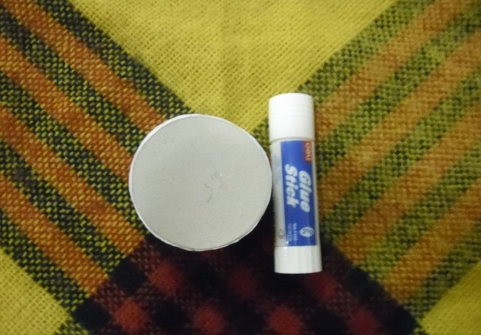 Из цветного картона и прозрачной прочной пленки вырезается круги с радиусом большим на 1 см, чем круг в белом картоне. Пленочный круг приклеивается с задней стороны к белому картону.