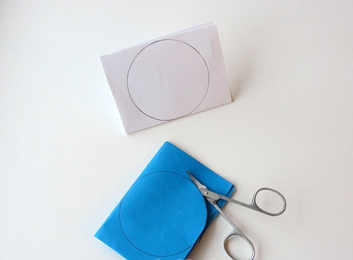 Из белой бумаги вырезать большой кружок. Сложить его 5-6 раз.