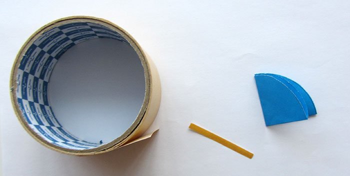 По периметру пленочного круга приклеиваются кусочки двустороннего скотча.
