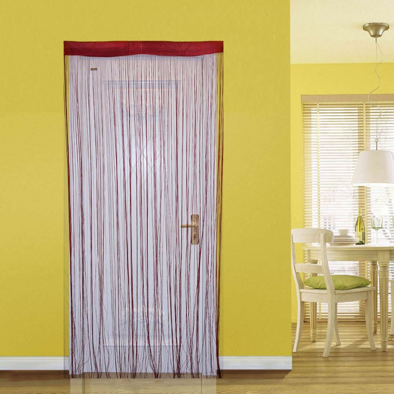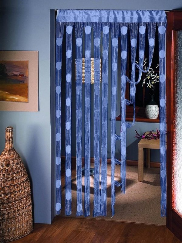Занавески из синтетики отличаются прочностью и долговечностью. Это отличный вариант для дверного проема кухни. Синтетические шторы легко стираются, что позволяет реже прибегать к стирке. Из тонких веревочек делаются нитяные шторы. Мода на них пришла с Востока. Их делают из натурального материала или синтетики. В дверных проходах вешают также шторы из деревьев и других растений. Их оборудуют соединительными шарнирными элементами, иногда размещают в несколько рядов.