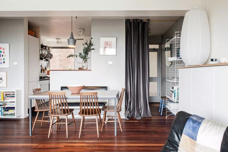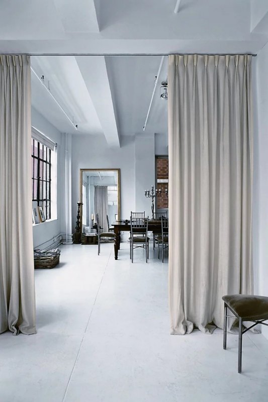 Данный способ разделения пространства удобен в первую очередь для кухонь. Ими также оформляют зоны в квартирах-студиях. Декоративный прием с использованием штор вместо дверей известен тем, что он добавляет уюта и «домашности» помещениям в холодных тонах. Обстановку можно оформить и «более строго». Ряд исторических и современных стилей в интерьере приветствует применение большого количества занавесов разной фактуры и текстуры. Одна из главных причин для установки штор на дверной проем — желание уменьшить распространение шума: если жильцов в доме несколько, они смогут устроить шумоизоляцию. Занавески с «висюльками» предназначаются только для украшения и для того, чтобы сделать помещение более интересным. Шторы также применяются с целью замаскировать недостатки дверных коробок или скрыть углы. Складки и банты выполняют декоративную функцию. Шторы необходимо размещать так, чтобы они не мешали передвигаться по дому.