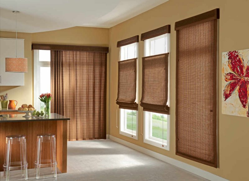 Есть и другие виды штор. Дерево — универсальный материал, применимый во многих сферах. Это касается даже штор. Подобные конструкции не похожи на обычные; они экологичны и имеют презентабельный вид. Стиль интерьера можно усилить с помощью такого акцента, как деревянные шторы. Бамбуковые изделия украсят помещения, оформленные в тропическом стиле. Шторы в виде висюлек состоят из отдельных полосок с нанизанными элементами.
