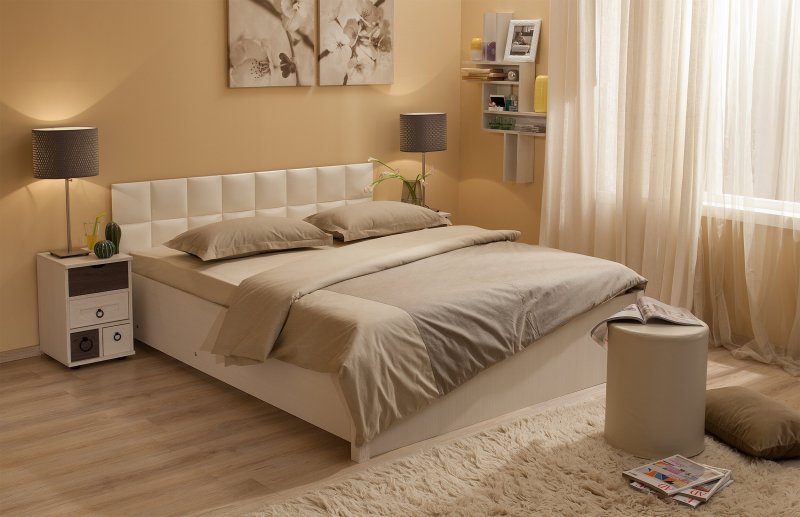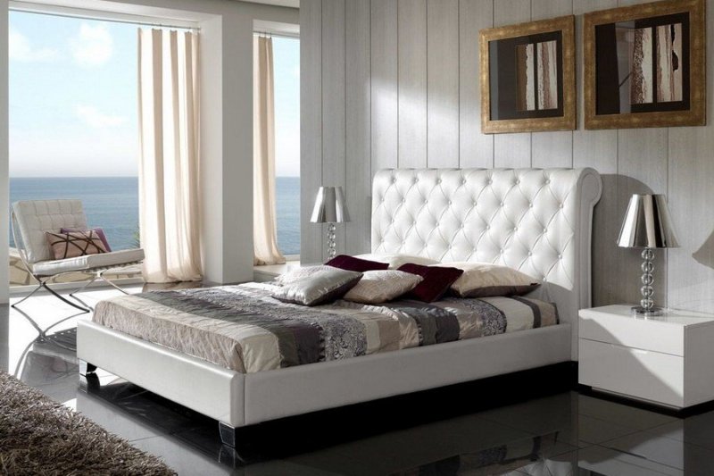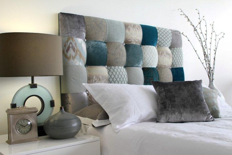Такой способ декора спинки подойдет любителям комфортного нахождения в кровати в любом положении. На мягкое изголовье можно опереться спиной, оно хорошо защищает от сквозняков и исходящего из-за соседней стены шума. Дизайн может быть разнообразным – простым прямоугольным или фигурным.