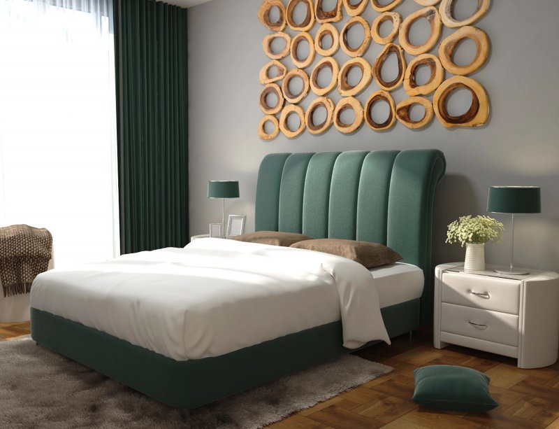 Выбор формы и материала для изготовления спинки кровати зависит от общего лидирующего стиля в спальне. Кожаная обивка идеально впишется в стиль модерн. Богато украшенные пестрые гобелены подойдут для классических интерьеров. Натуральное дерево над двуспальной кроватью подчеркнет изящество кантри, а мебельные окрашенные, декорированные бархатом щиты – стилизованный винтаж.