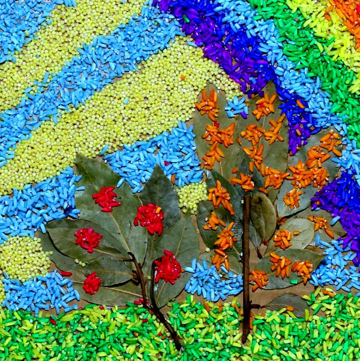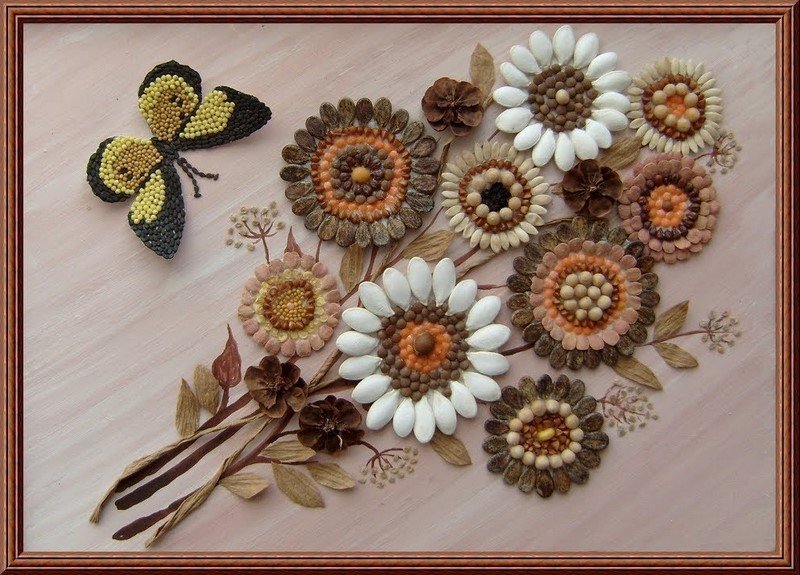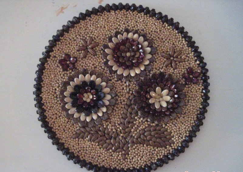 Многообразие оттенков таких семян позволяет легко применять их для создания красочных необычных картин и аппликаций.