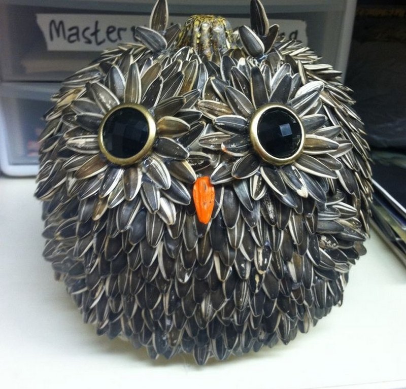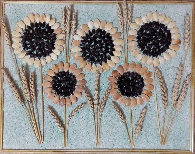 С помощью доступных всем и каждому семечек подсолнуха легко и просто получаются такие поделки: