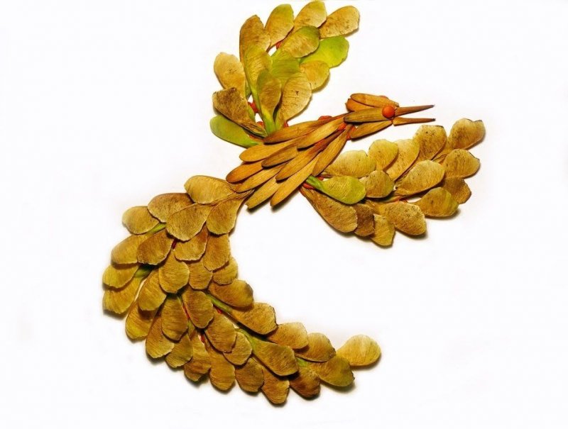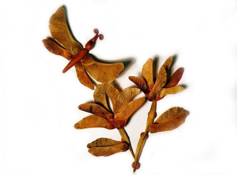 Необычные семена деревьев идеально подходят в качестве дополнения к уже готовым фигуркам. Из них получаются интересные крылья, ушки. Также отдельно из этих природных материалов можно сделать такие оригинальные поделки: