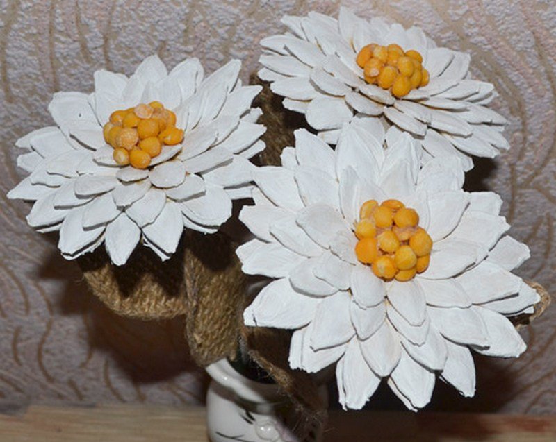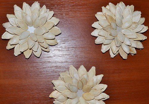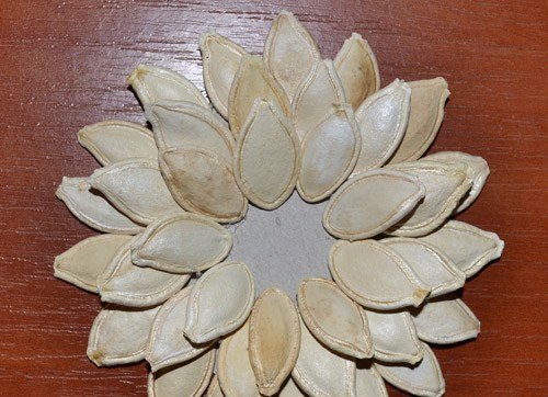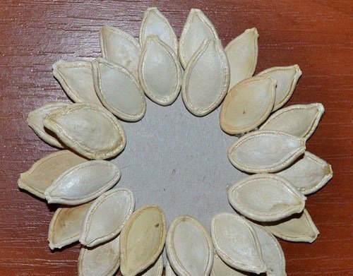 К ним относятся семена подсолнечника, арбуза и тыквы. Они чаще остальных применяются для создания объемных поделок или оклеивания основ.