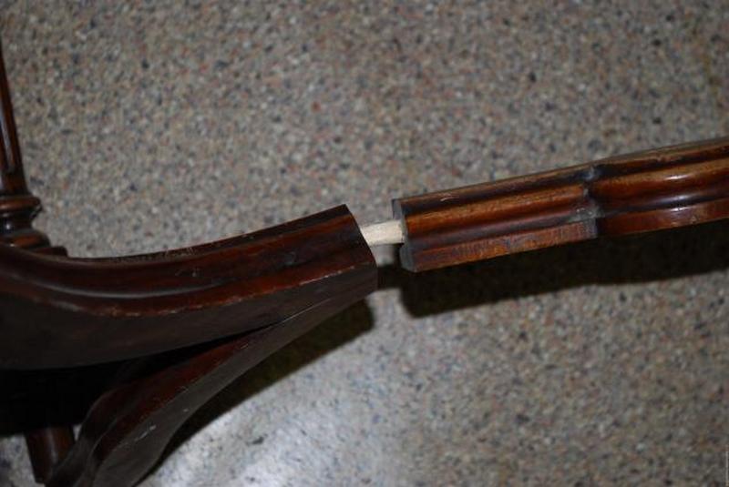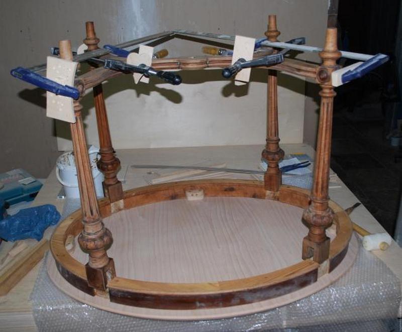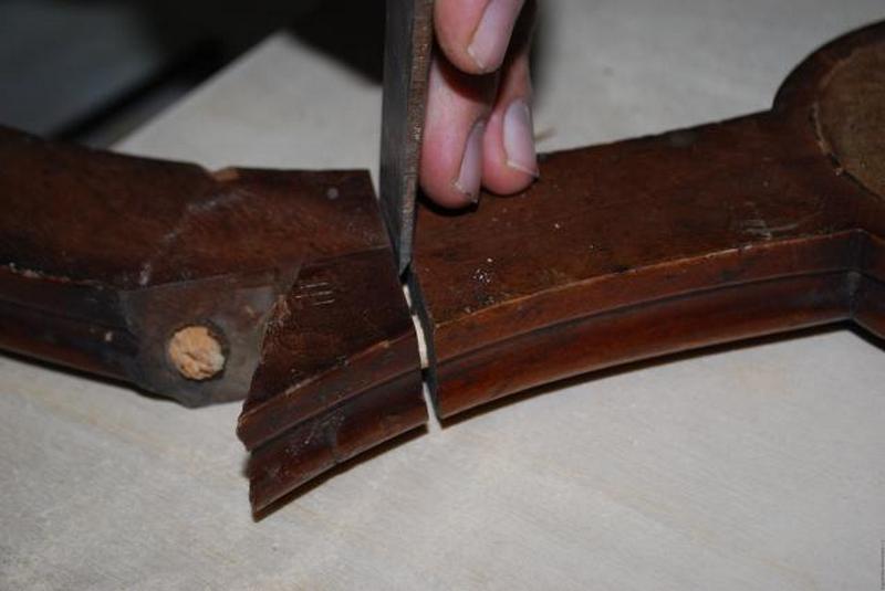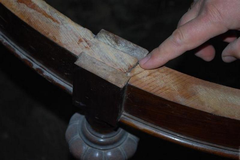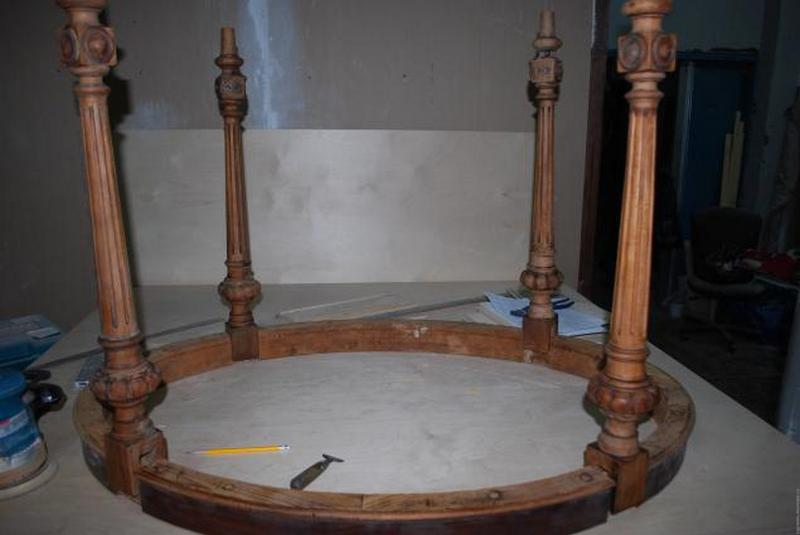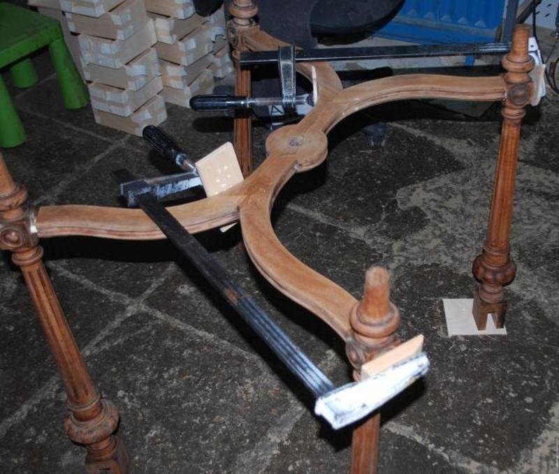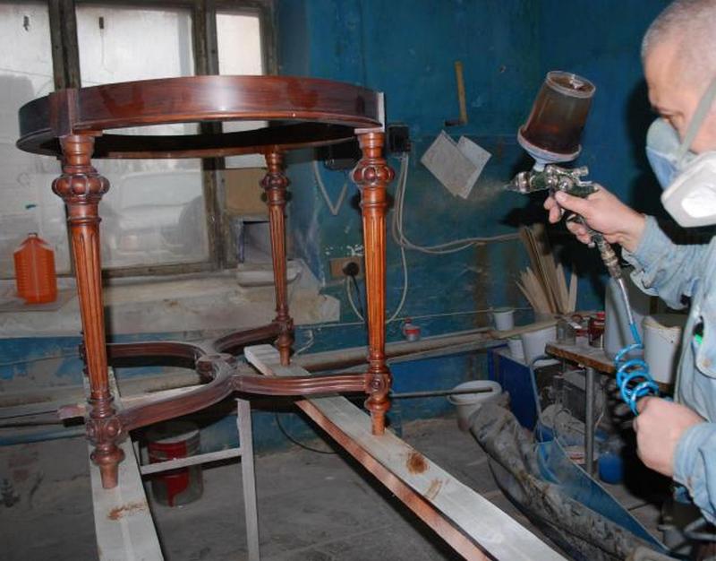 Проведение первичного ремонта всей конструкции (данный этап касается восстановления целостности изделия: к примеру, для обеденного стола работа будет заключаться в ремонте каркаса, для письменного – в ремонте каркаса, полочек, ящиков).