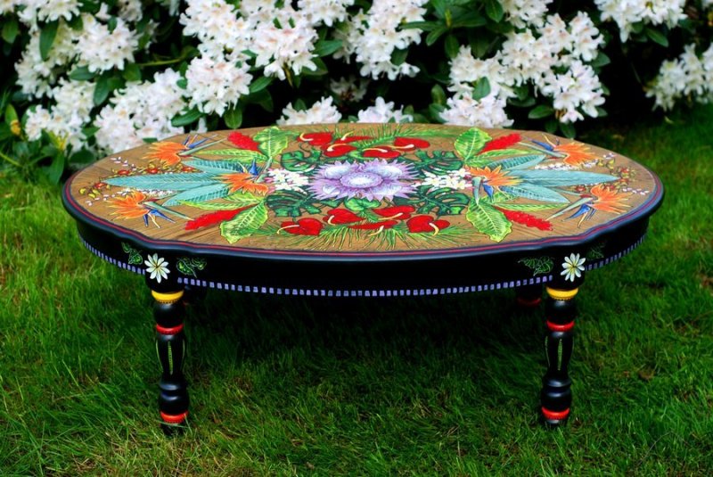 Необычно покрасить или задекорировать стол можно без привлечения специалистов – своими руками. Такая работа может проводиться разными способами: