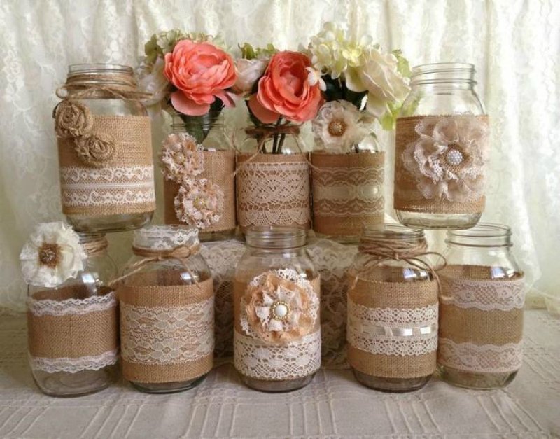 Создание вазы из стеклянных банок