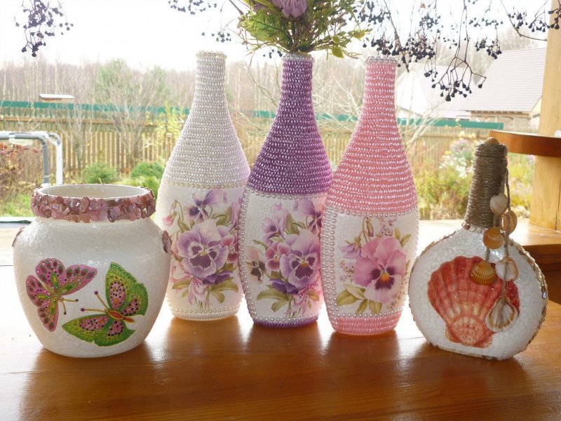 Ваза из стеклянных бутылок и способы декора