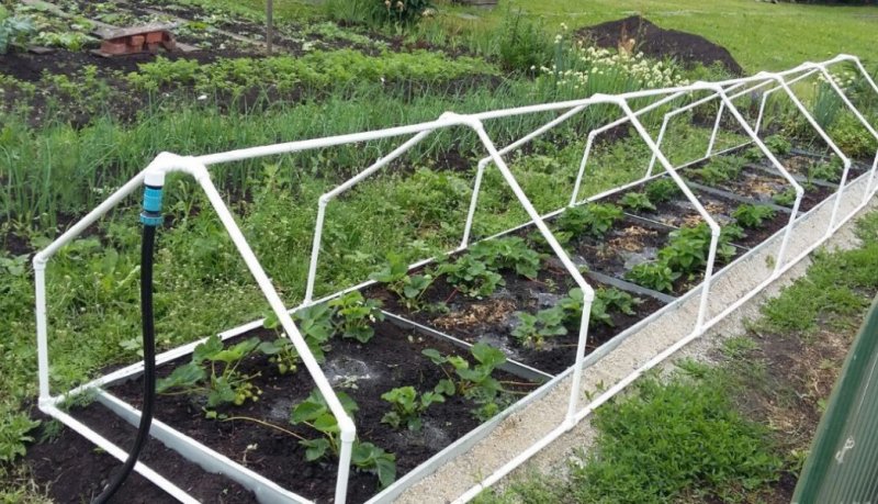 Парник — максимально упрощенная конструкция, накрытая пленкой, которая предназначена для выращивания рассады. Их используют только ранней весной, когда температура окружающей среды еще не поднялась до нужных значений, и выращивать слабые побеги на улице без специальных заграждений слишком опасно. Парники считаются конструкциями временными. В отличие от теплиц, они не имеют окон или дверей. Чтобы соорудить небольшой парничок, достаточно набора трубок для основания, для полукруглых перекладин, Т-образных фитингов и уголков. Конструкцию собирают из нескольких «арок», на которых впоследствии с помощью специальных пластиковых прищепок-зажимов будет закреплена прозрачная пленка. Попасть в парник можно, только сняв защитное полотно.