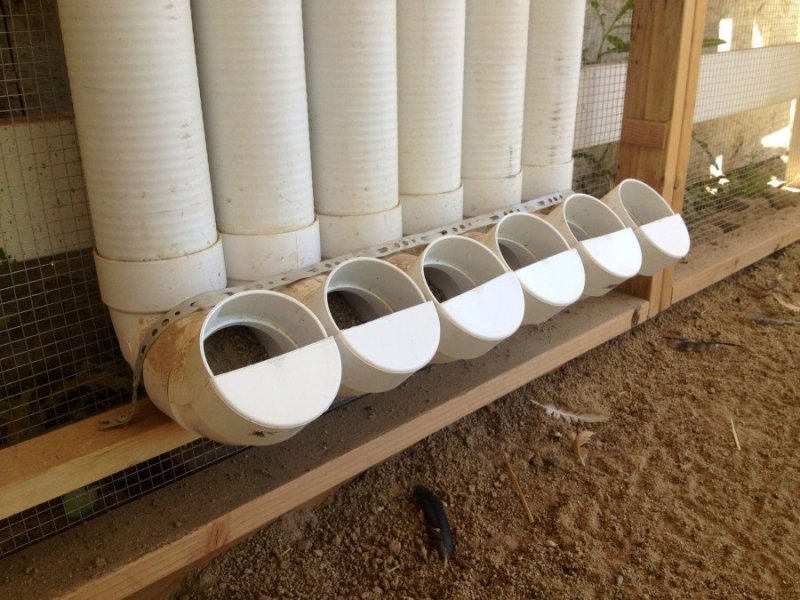 Кормушки для кур из трубок можно соорудить двумя способами: