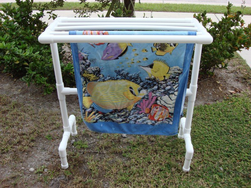 Сборка вешалки или сушилки для одежды начинается с основания. Потребуется четыре трубки для ножек. Их соединяют между собой с помощью фитингов-тройников. В боковое ответвление вставляют трубку-перекладину, которая повысит устойчивость изделия, а в верхнее — две стойки. На ножки надевают заглушки, чтобы внутрь не попадали пыль и грязь. Дополнительно боковые стойки тоже можно закрепить вверху еще одной перекладиной, опять же с использованием фитинга-тройника. Из этих же деталей делают «крючки». Верхняя перекладина полностью собирается из Т-образных фитингов с заглушками.