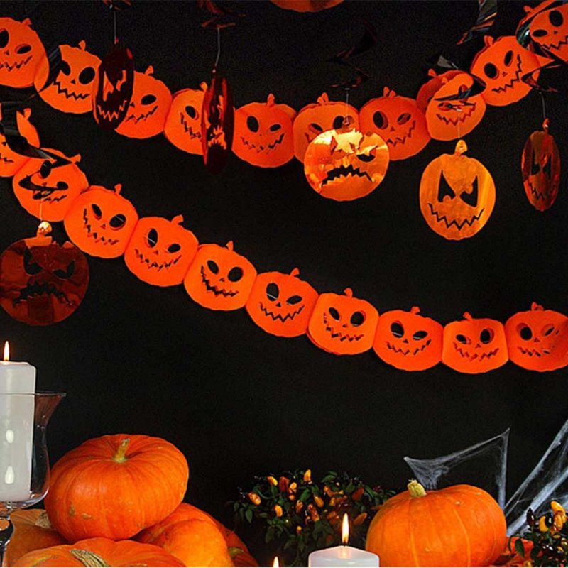Украшение такого праздника, как Хэллоуин, производят при помощи миниатюрных тыковок, с вырезанными на них рожицами. На шнурок тыквы привязывают за хвостики.