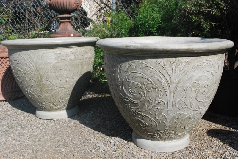 Классический. Вазоны наряду со скульптурой, фонтаном находятся в центре композиции. Изготавливаются в разных вариациях. Стандартные варианты имеют идеально круглое основание, на ножке венчающееся чашей.