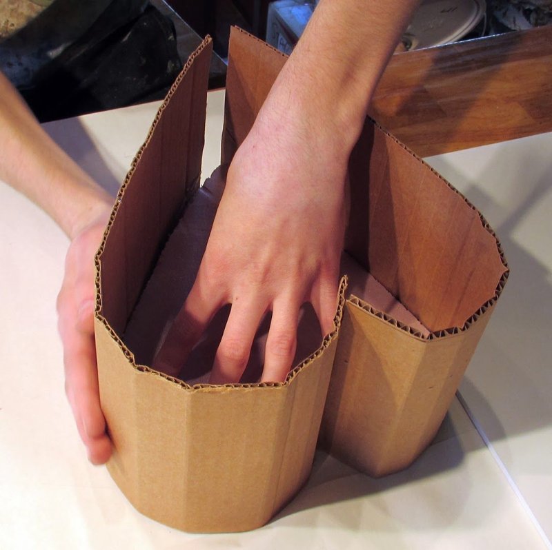 Простые вазоны можно выполнить, используя шаблоны и формы. Применяются как готовые модели, так и сделанные своими руками. С их помощью изготавливаются в основном несложные по структуре стандартные конструкции в виде геометрических фигур. В качестве образца можно использовать любой подручный материал: