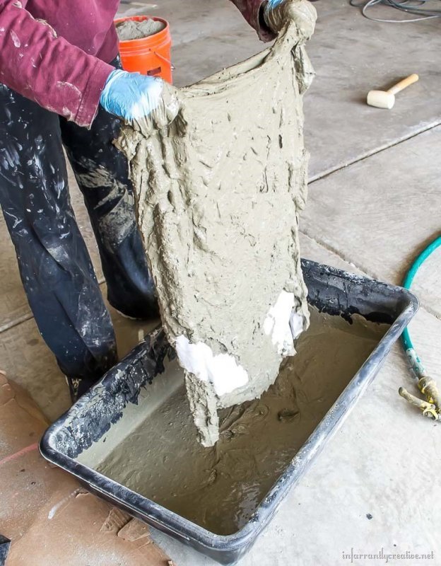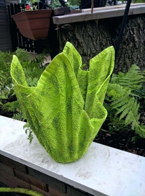 Используя разное полотно, можно получить интересную фактуру вазона. Поверхность бывает гладкой, шероховатой, с буграми, рельефной. Бетоном можно пропитывать разные вещи, будь то кофта, джинсы, покрывало, мешковина или другие изделия.