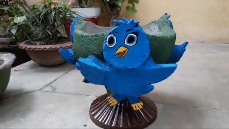 Смешиваем гипс с водой, выравниваем всю конструкцию. Используя навыки скульптора, шпателем делаем имитацию перьев, придаем голове объем, формируем клюв.