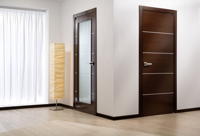 Дверная конструкция может быть различной по высоте, ширине, оформляться прозрачным, матовым, узорчатым, витражным стеклом либо быть полностью «глухой». Межкомнатные приспособления выполняются из натурального дерева, ДСП, пластмассы, стекла, МДФ, одновременно нескольких материалов.