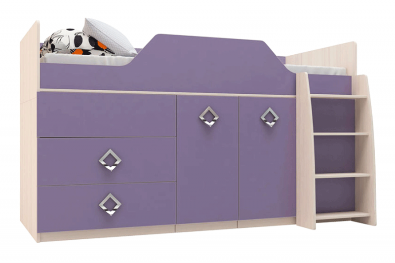 высокая кроватка для одного ребенка. Внизу четыре-шесть выдвижных ящичков разного размера для хранения одежды, игрушек, книг, наверху – спальное место, к которому ведет лесенка;
