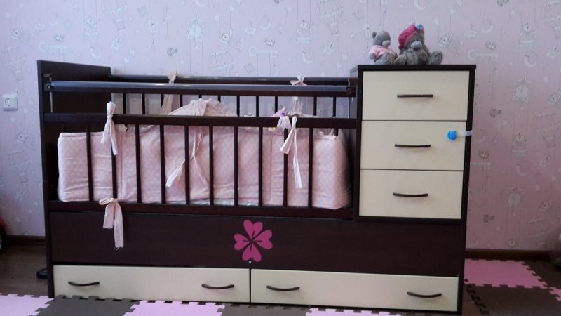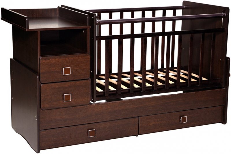 кроватка для младенца. Представляет собой зарешеченную спальную зону с пристроенным к ее торцу комодом, верхняя часть которого обычно оснащается пеленальным столиком. Высота расположения дна – регулируемая.